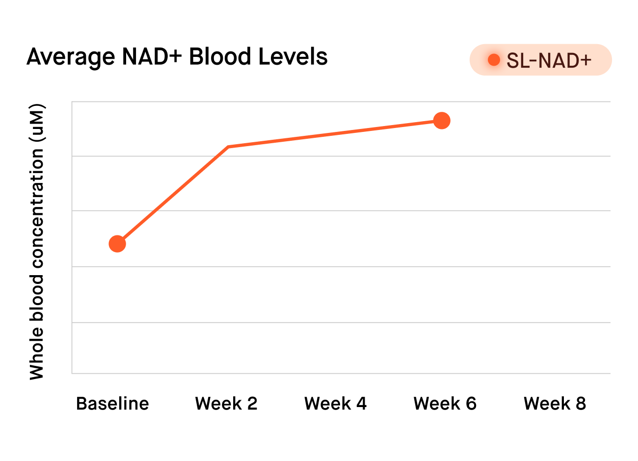 +59% NAD+ increase after 2 weeks and +76% after 6 weeks.